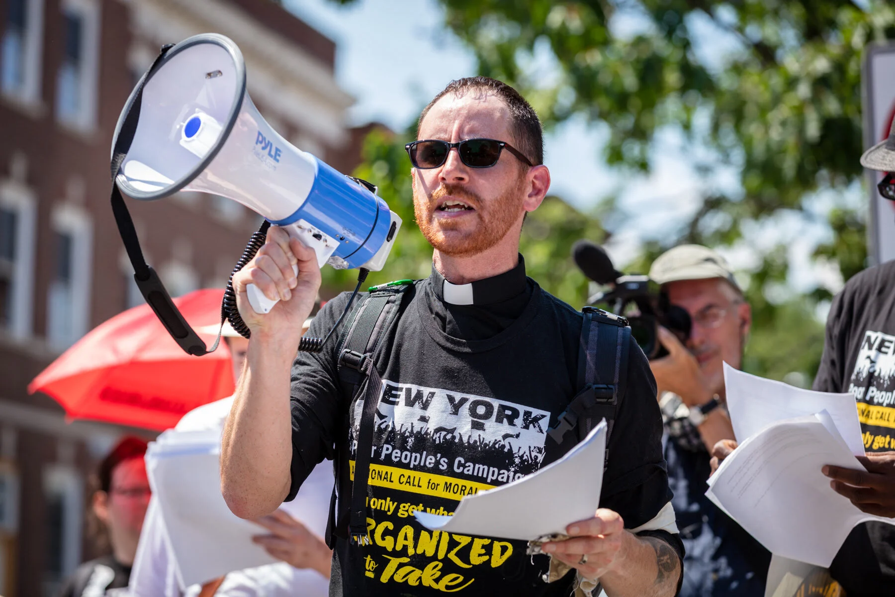 On Monday, March 15th, religious and labor rights leaders from The New York State Poor People's Campaign: A National Call For Moral Revival and Labor Religion Coalition delivered a series of demands to the New York State capitol. It was an extremely cold day in Albany, but we remained determined to lift our voices. We arrived bundled up, carrying banners, posters, megaphones, and our demand for human rights. This was a part of a synchronized national day of action, organizers and activists from across the country journeyed to state capitols demanding Covid Relief, Voting Rights, and A Moral Justice Jubilee. We were a chorus. We were a band singing in harmony, "Housing and Healthcare for All!", "Economic and Racial Justice For All!"